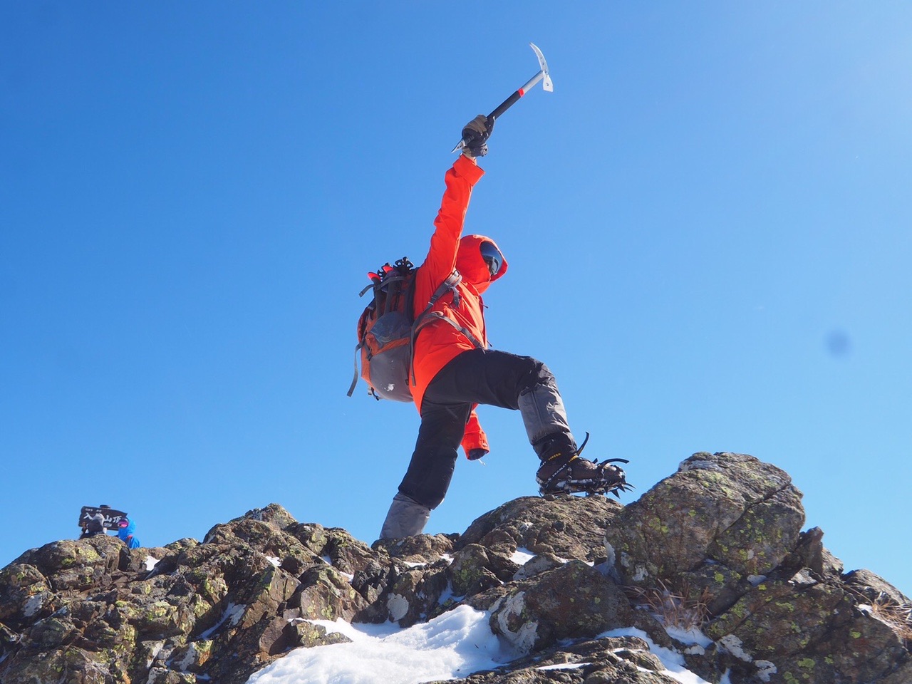 初めてピッケルを購入して持って行った登山なので、ノリノリで写真をとっています笑
